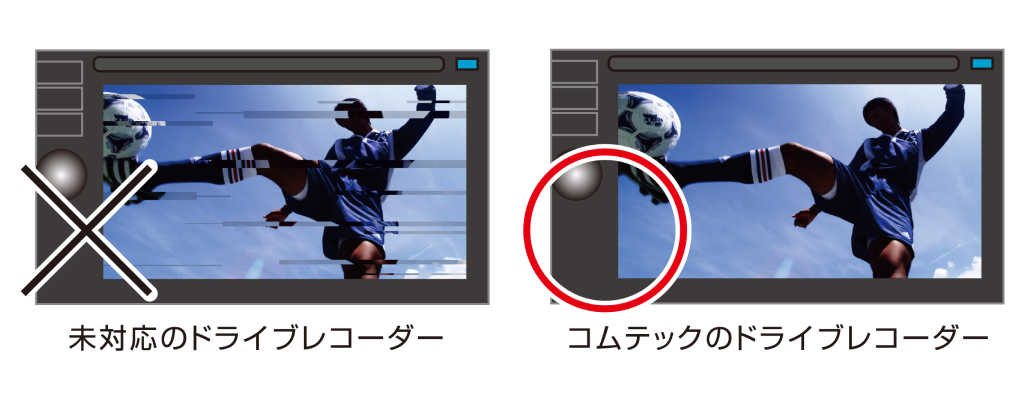 ※ リヤカメラに赤外線LEDを搭載していないため、夜間の明かりが少ない場所などでは、運転者が見えにくい映像が記録される場合があります。