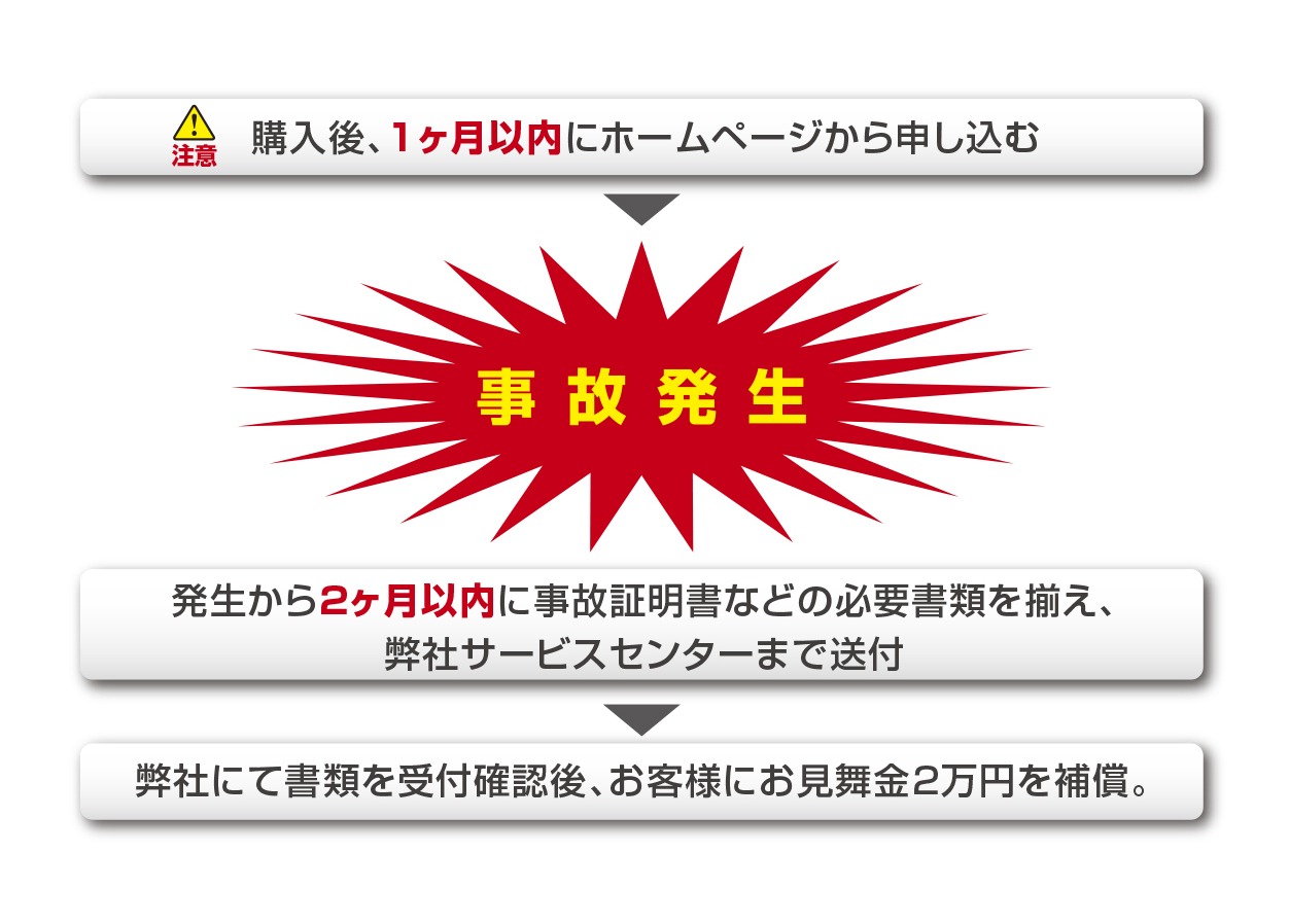 ※2万円補償サービスを利用するには、購入後1ヶ月以内の登録が必要です。また補償期間は登録から1年間となります。