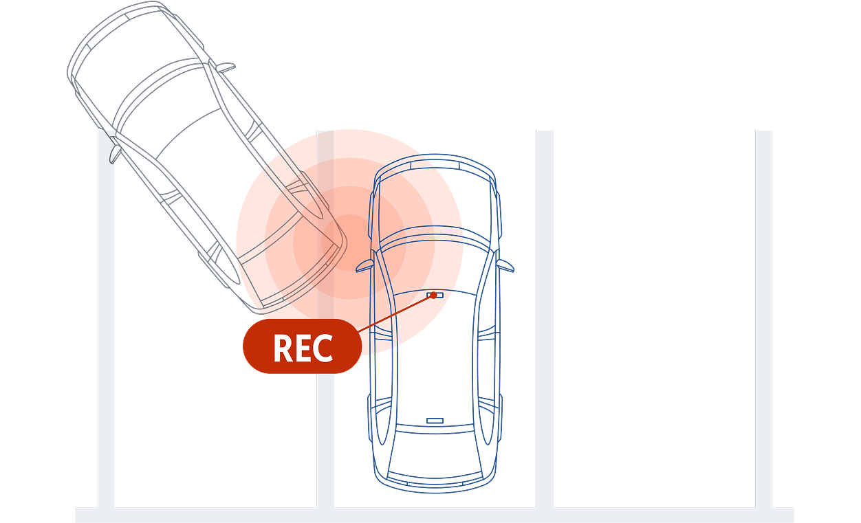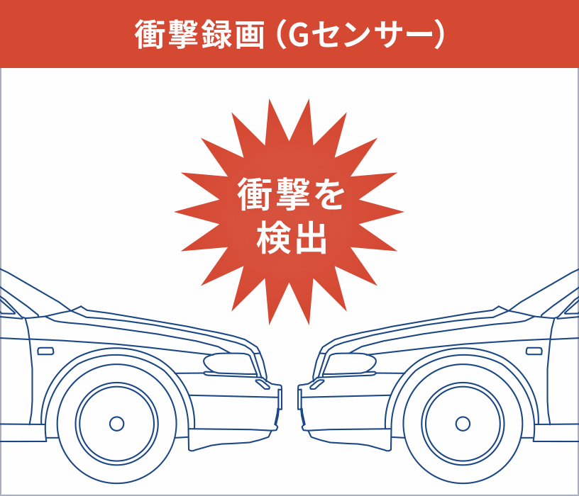 また衝撃を検出し、衝撃前/衝撃後*の映像を記録します。