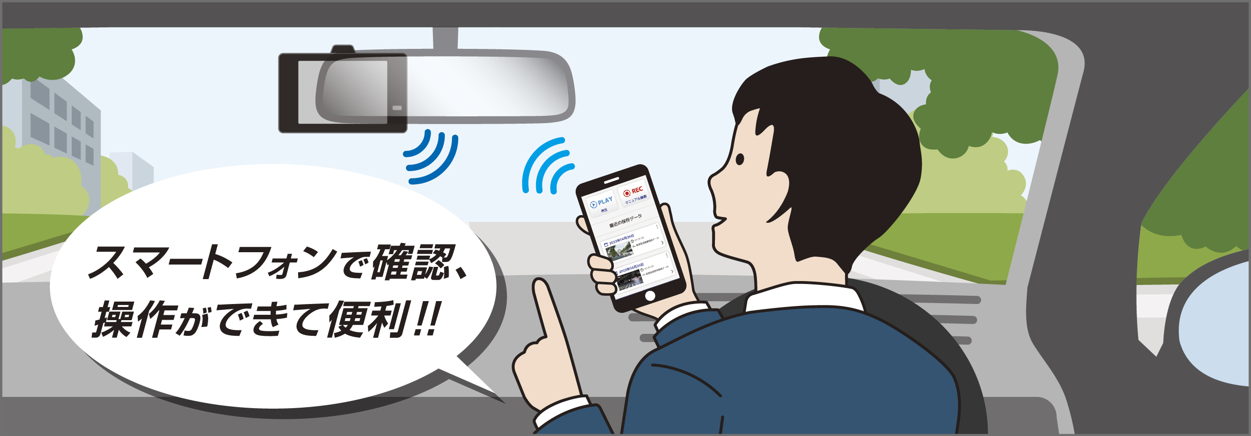 ※リヤカメラは赤外線LEDを搭載していないため、夜間の明かりが少ない場所などでは、運転者が見えにくい映像が記録される場合があります。