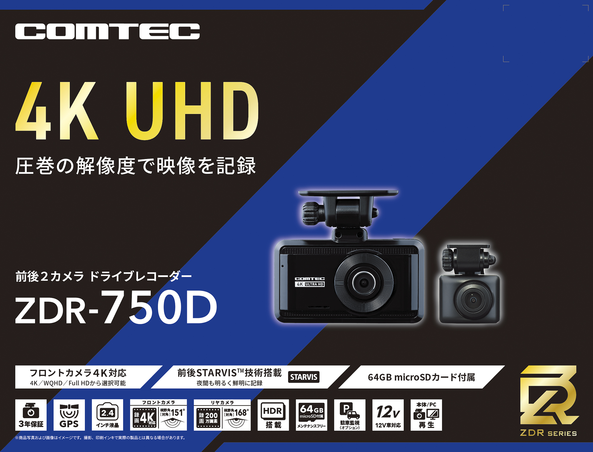 フロントカメラ 4K UHD記録対応前後2カメラ ドライブレコーダー