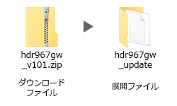 | 2. | 展開した【hdr967gw_update】フォルダの中に、【FW_HDR967GW_1.0.1.bin】というファイルがあることを確認します。 |